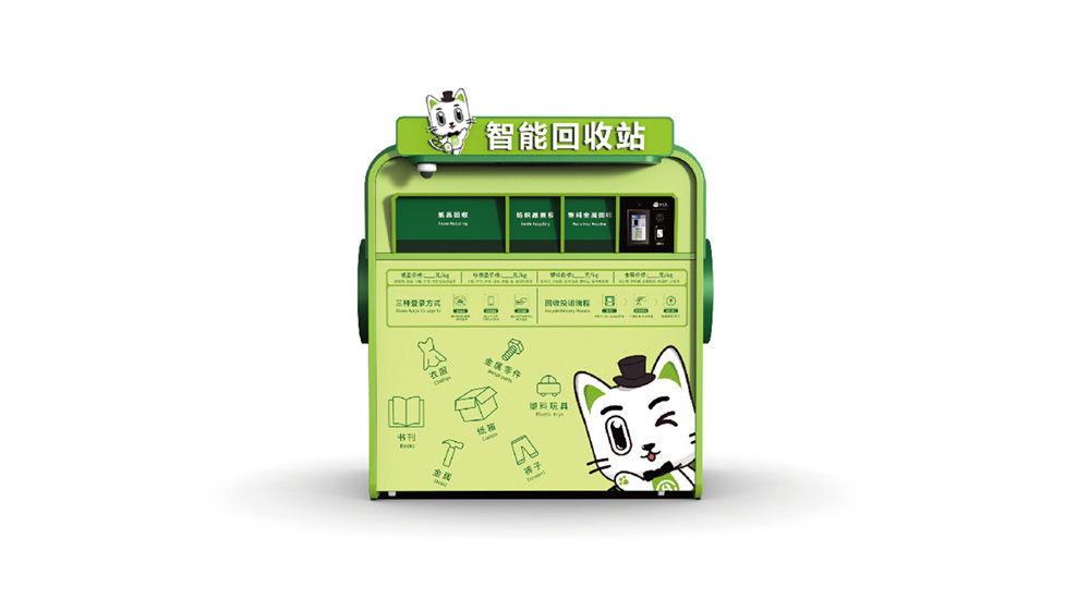 貓先生智能再生資源回收站,廢舊物資回收站,智能再生資源回收箱實(shí)景圖片,社區(qū)垃圾分類站生產(chǎn)廠家